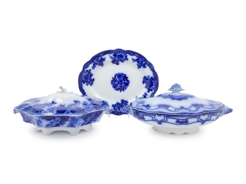 Flow Blue, one with under tray.