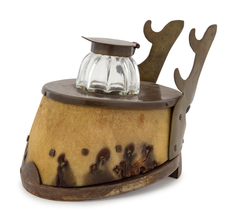 A Victorian Bronze Mounted Hoof-Form Inkwell