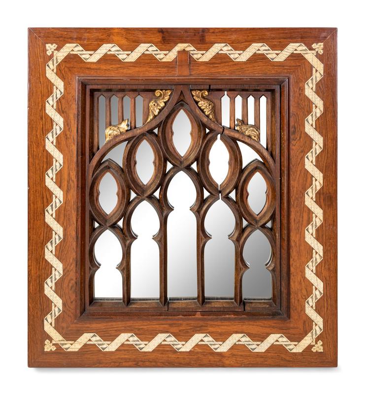 Overall dimensions 28 1/4 x 26 inches. Dimensions of mirror plate 18 3/4 x 16 inches.
