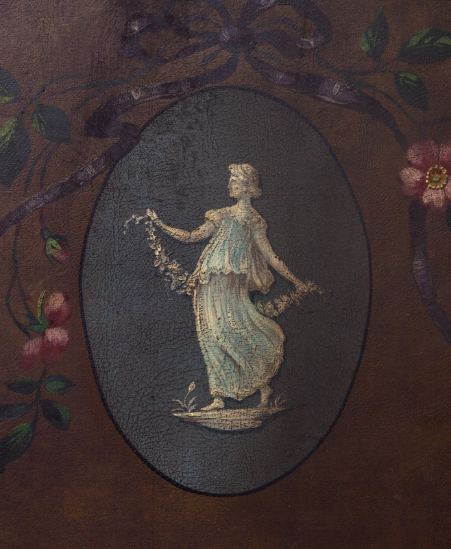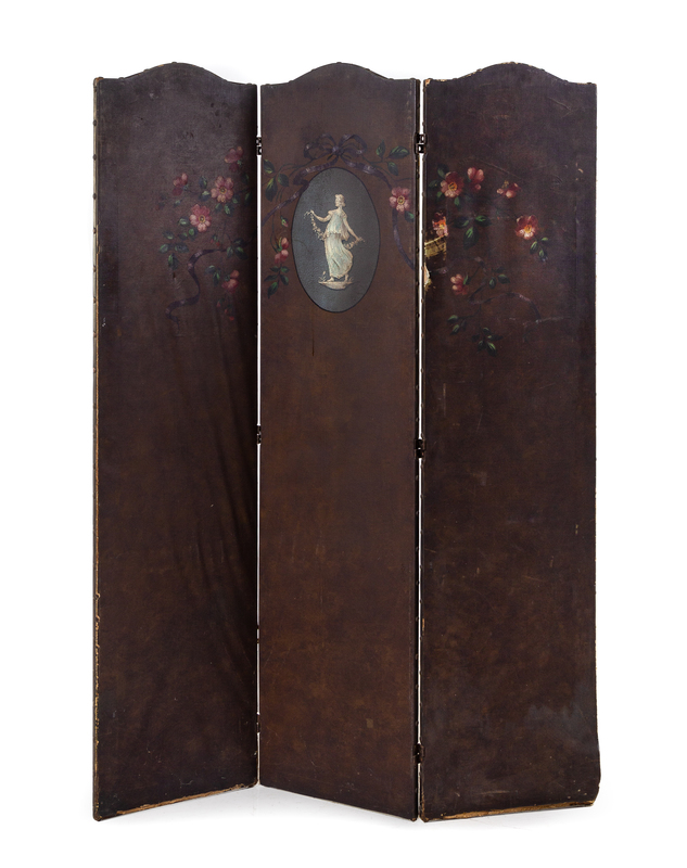A Victorian Painted Canvas Three-Panel Floor Screen