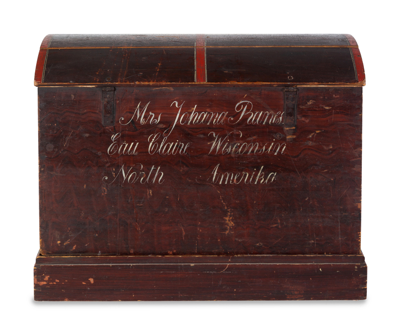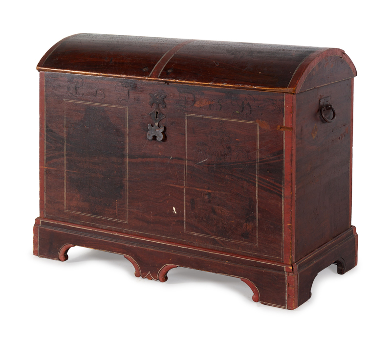 A Molded, Grain-Painted and Stencil-Decorated Pine Dome-Top Blanket Chest