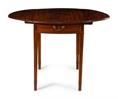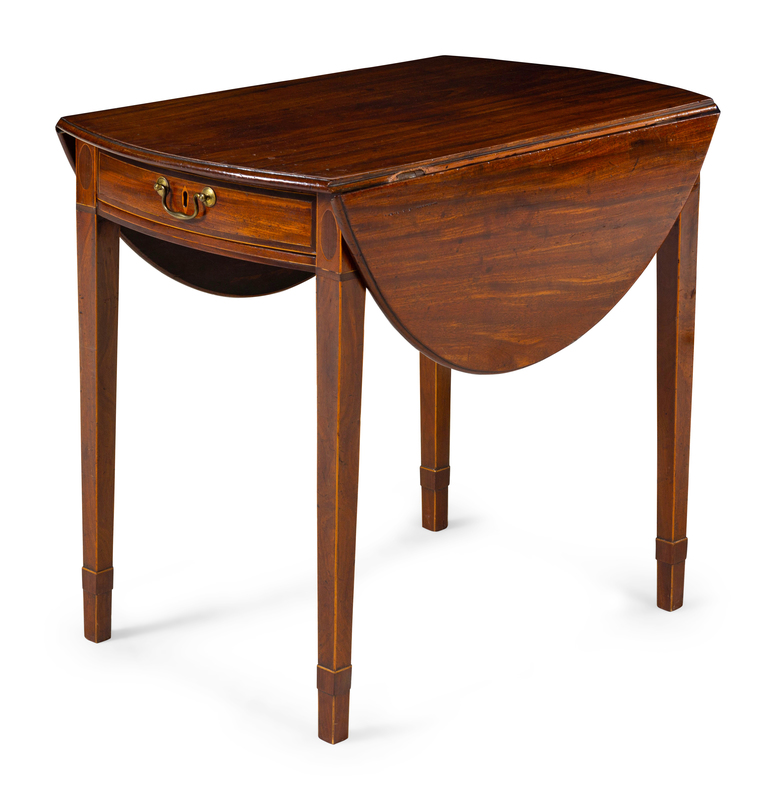 the rectangular top issuing two d-shaped leaves above a single drawer, raised on tapering legs.