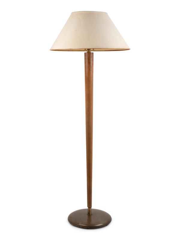 A Brass and Walnut Floor Lamp
