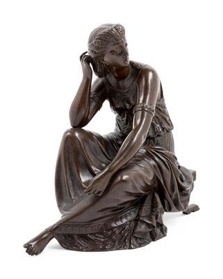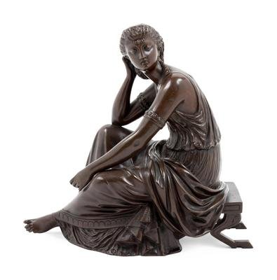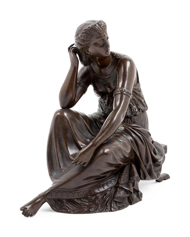 A Continental Patinated Bronze Seated Maiden
