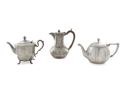 An English Arts & Crafts Hand-Hammered Pewter Teapot