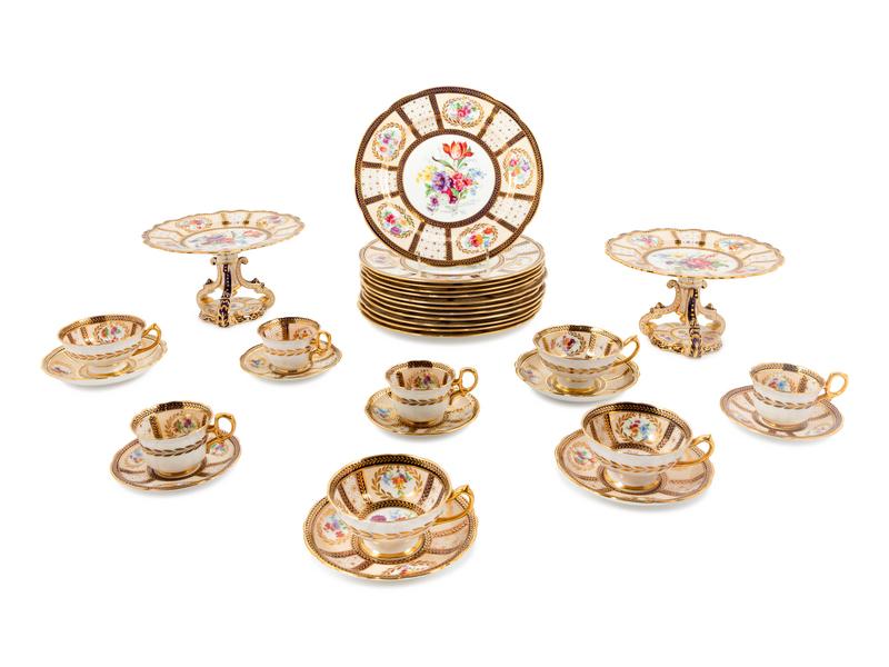 A Continental Parcel-Gilt and Polychrome Porcelain Dinner Service