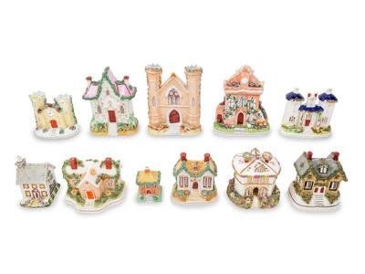 Eleven Staffordshire Cottage and Church-Form Pastille Burners