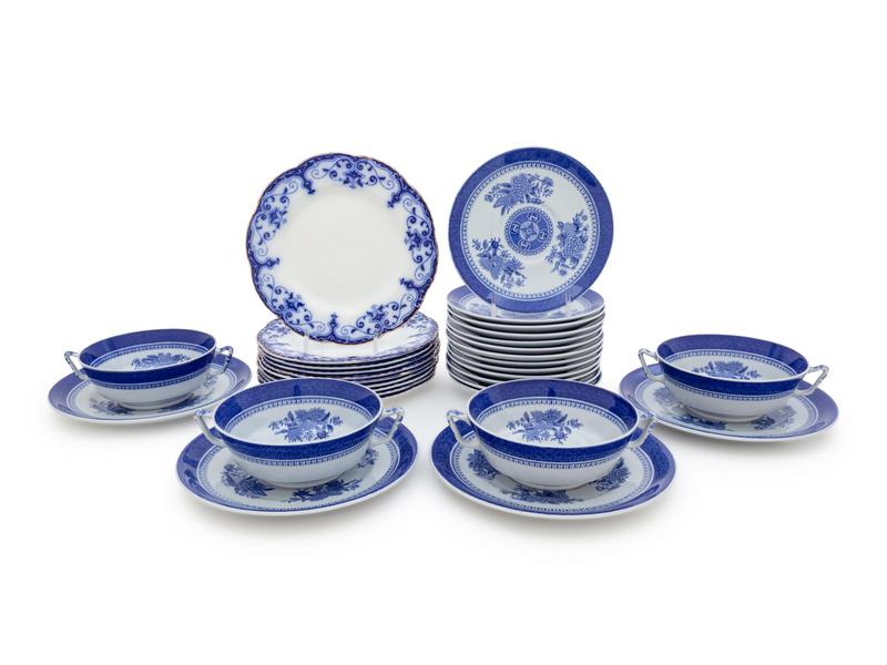 A Spode Transfer-Printed Blue and White Porcelain Part Dinner Service and Ten English Flow Blue Plates