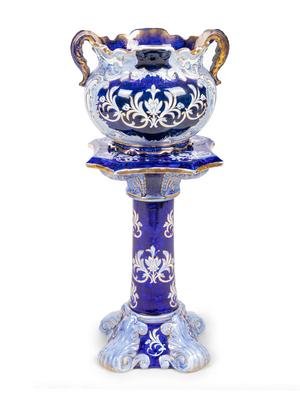 A Flow Blue Double Handled Vase on Stand