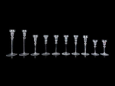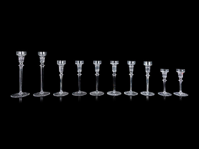 Ten Graduated Glass Candlesticks