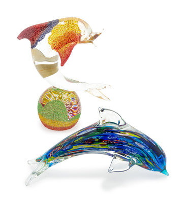 Two Murano Style Glass Dolphins