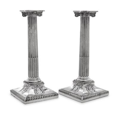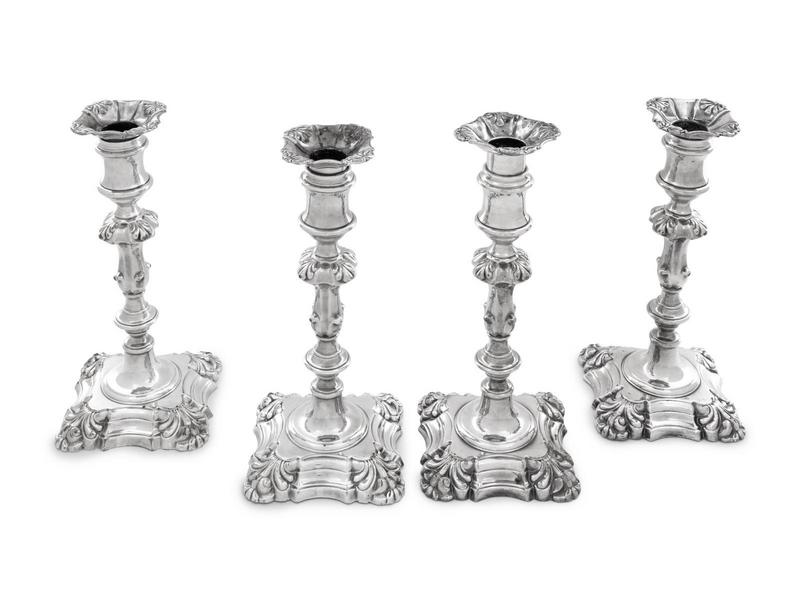 A Group of Four English Silver-Plate Candlesticks