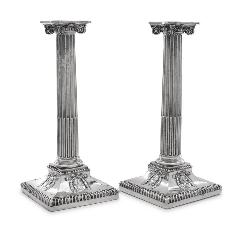 decorated in the George II taste, together with a pair of silver-plate columnar candlesticks.