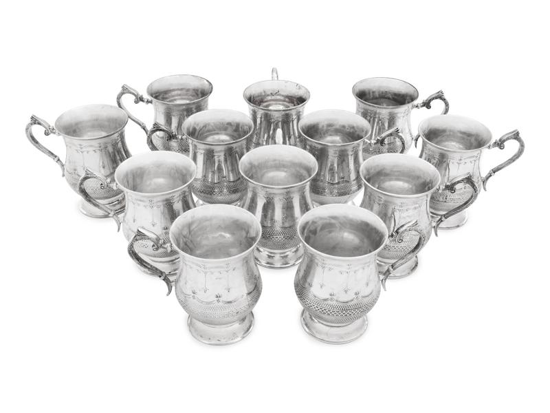 A Set of Twelve Silver-Plate Cups with Handles
