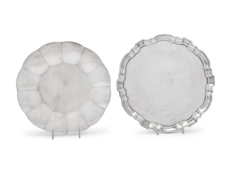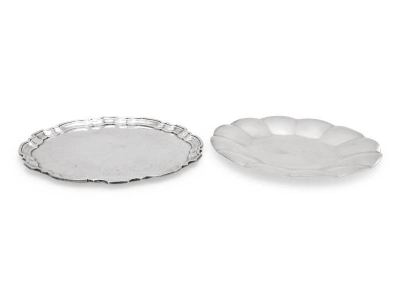 comprising a salver and a cake dish with a lobed border.