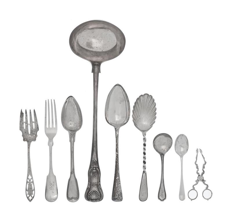 A Collection of Georgian Silver Flatware Articles