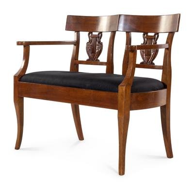 An Italian Neoclassical Style Walnut Double Chairback Settee