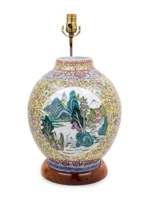 A Chinese Famille Rose Porcelain Vase Mounted as a Lamp