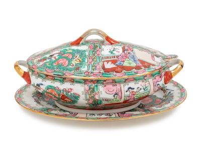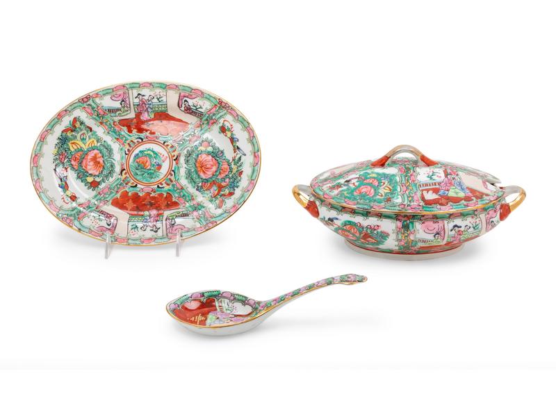 A Chinese Export Sauce Boat and Plate