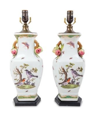 A Pair of Porcelain Vases Mounted as Lamps