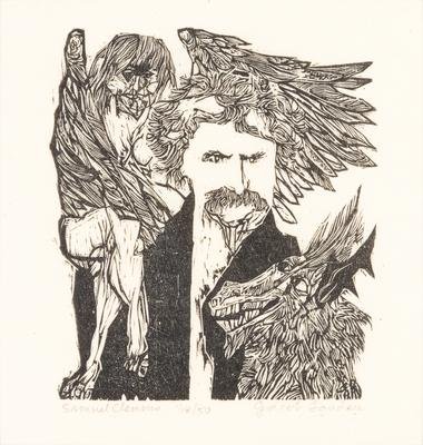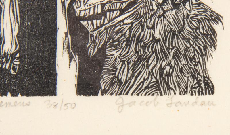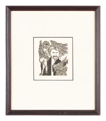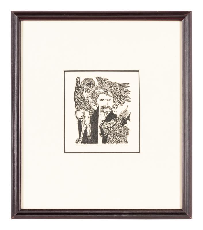 Height 5 7/8 x width 5 3/8 inches. Framed 15 x 13 inches.