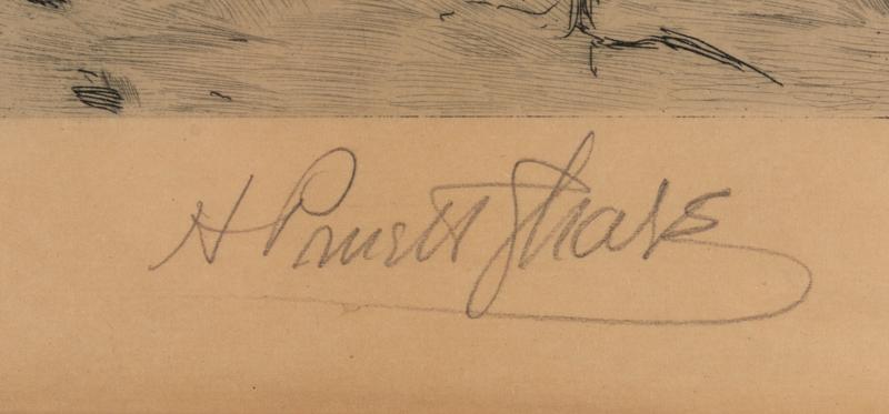 Height 7 3/4 x width 11 3/4 inches. Framed Height 17 1/2 x width 21 inches.