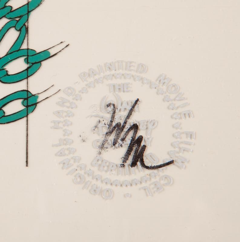 12 field production cel, 3 cel set up. Seal lower right initialed "WM."
