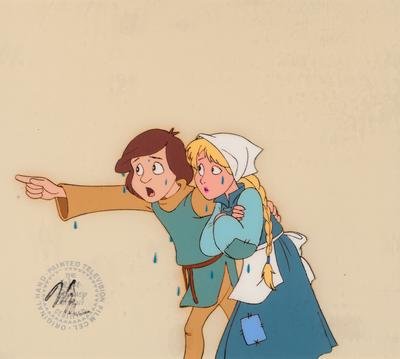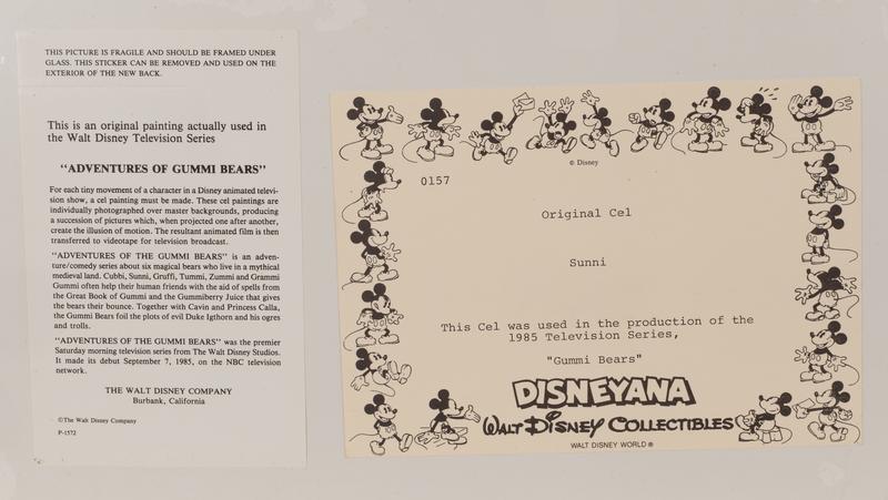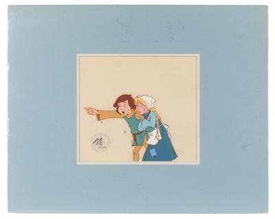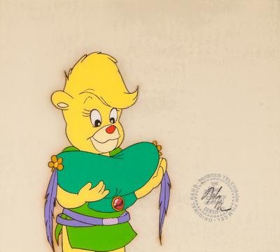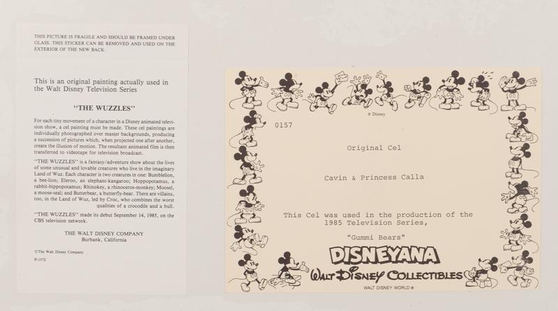 Two production cels from the 1985 Walt Disney television series, "Adventures of the Gummi Bears," depicting Sunni and Cavin and Princess Calla.