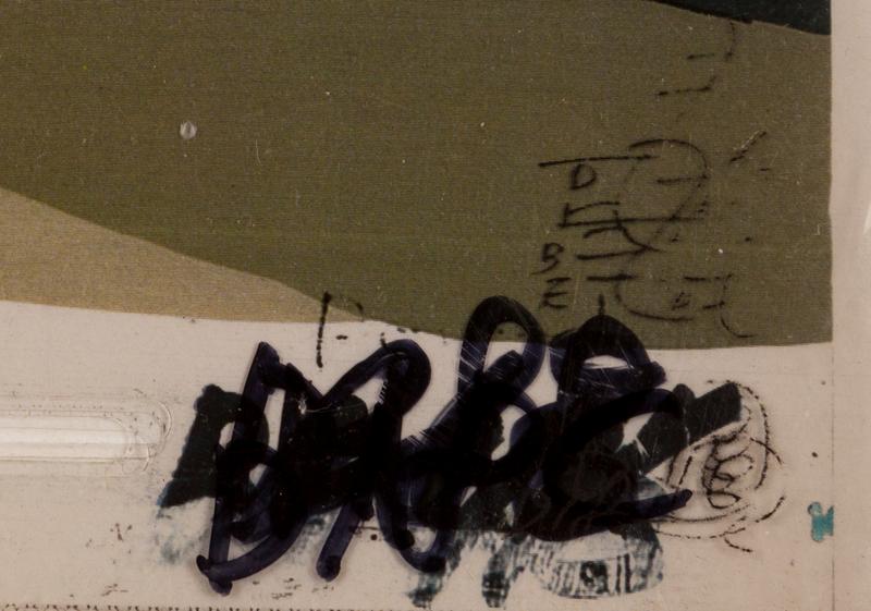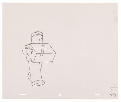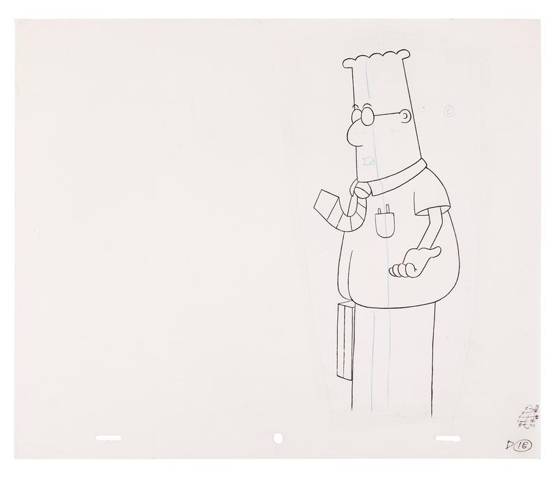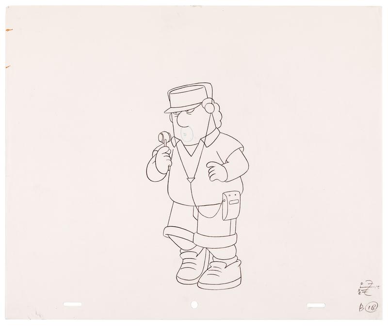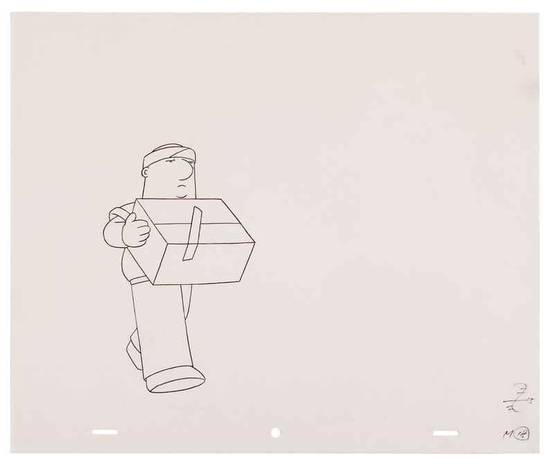 12-field production cel, 4 cel setup, printed test background, 4 matching ink drawings. Seal lower left.