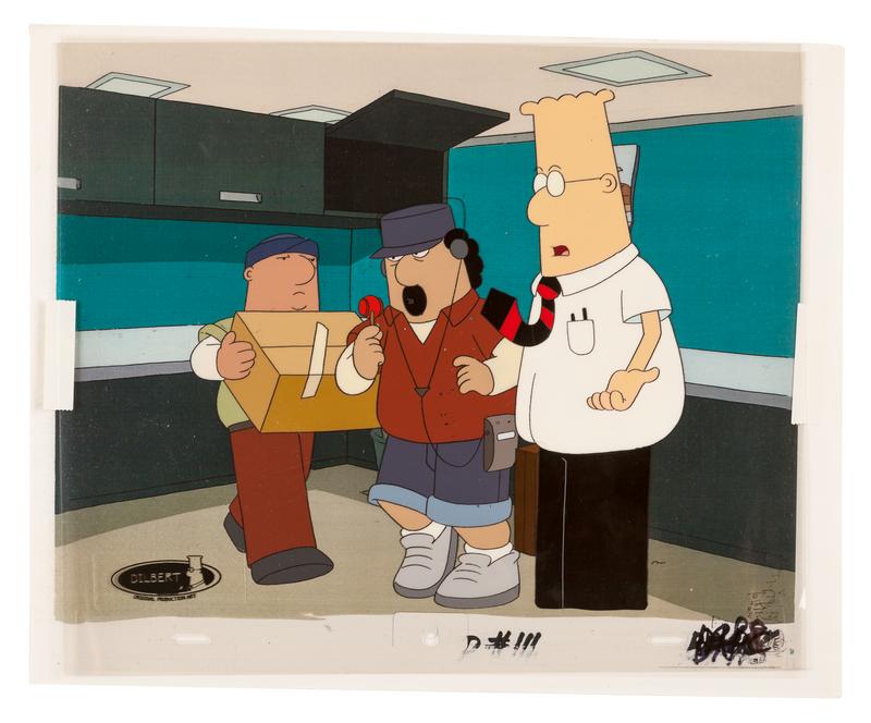 Scott Adams. Dilbert. Dilbert, a shipper, and a man wearing a Walkman. N.d.