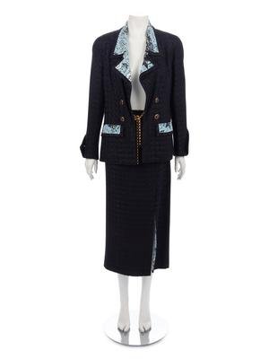 Chanel Dark Blue Houndstooth Skirt Suit, 1993