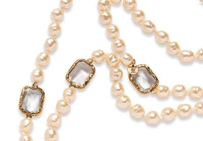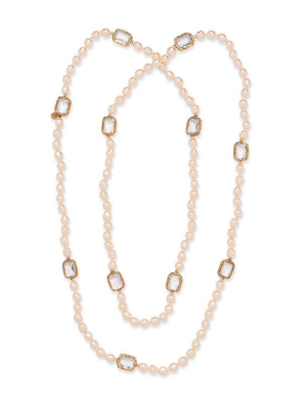 Chanel Vintage Crystal Chicklet & Baroque Pearl Sautoir Necklace, 1981