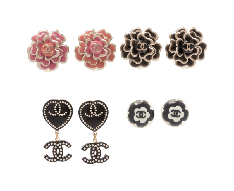 Four Pairs of Chanel Ear Clips in Enamel & Acrylic, 2003-09
