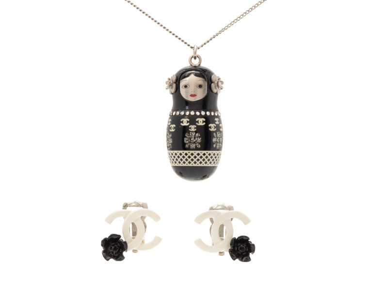 Chanel Stacking Doll Necklace, 2009 with CC Ear Clips, 2004