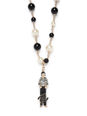 Chanel Faux Pearl & Black Bead Necklace with Figure Pendant, 2010