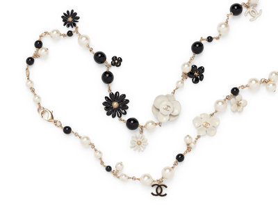 Chanel Faux Pearl and Black Bead Necklace with Flowers, 2013