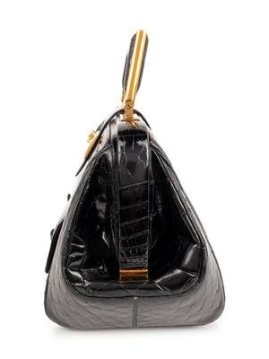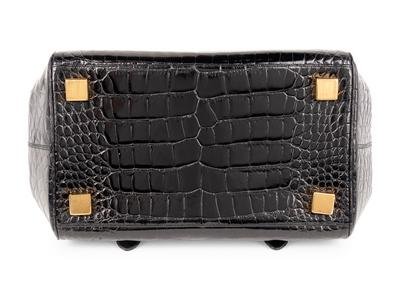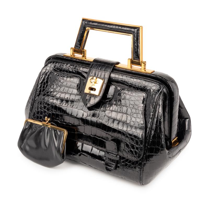 Black leather bag with gold-tone hardware. Included is a mirror and black leather with gold-tone coin purse.