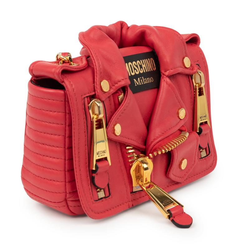 Pink calf leather jacket-form shoulder bag with gold-tone hardware.
