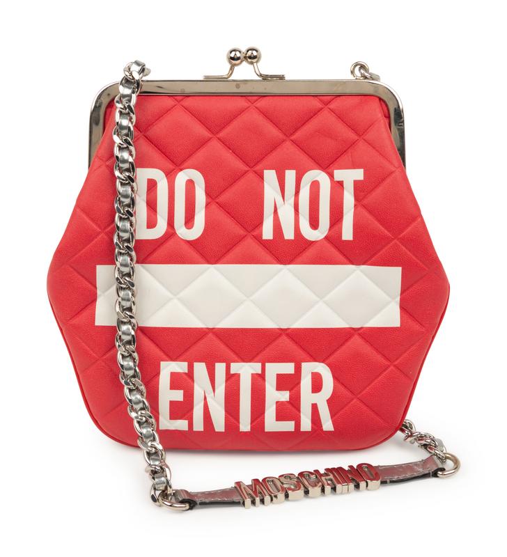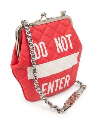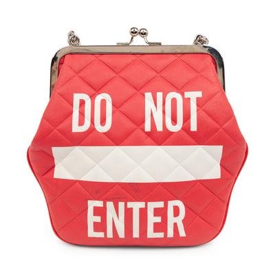 Red calf leather "Do Not Enter" frame bag with silver-tone hardware.
