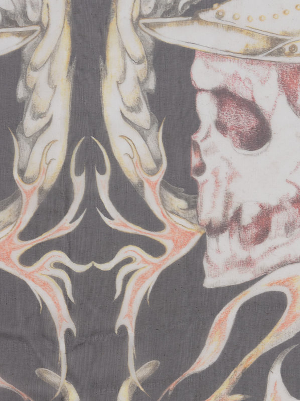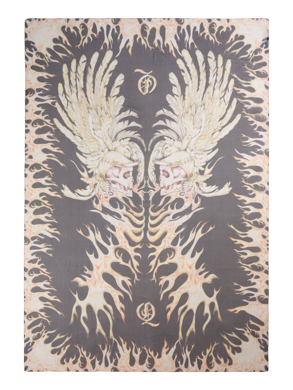 A skull and flames pattern, designed by Alexander McQueen. With original tags.