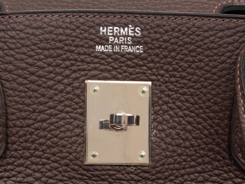 Hermès Chocolate Brown Togo Leather Birkin Bag with palladium hardware. Comes with lock, key, clochette, with dustbag and box.