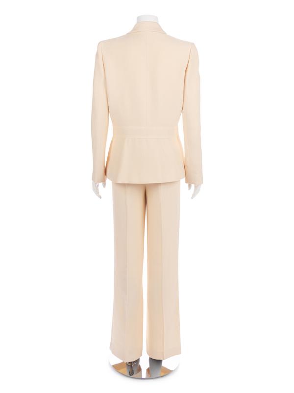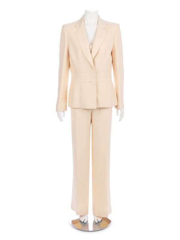 This lot includes a suit (jacket, top and pants) and a jacket and top set.