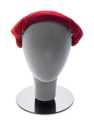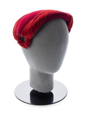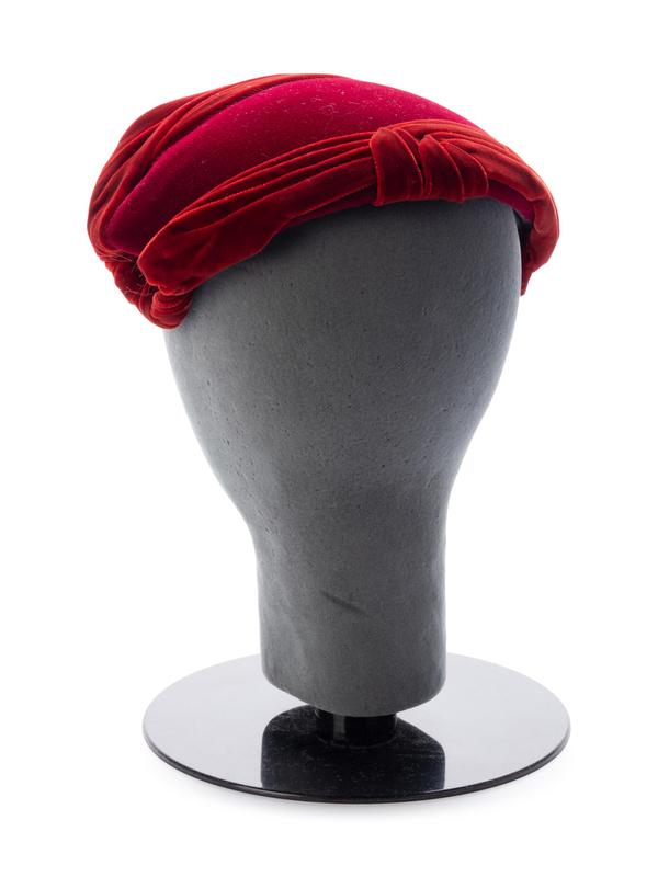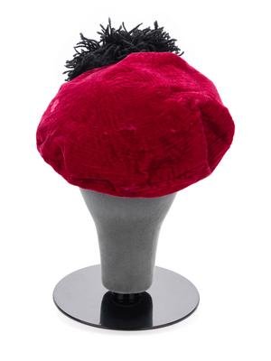 Burgundy felt with red velvet trimmed hat.