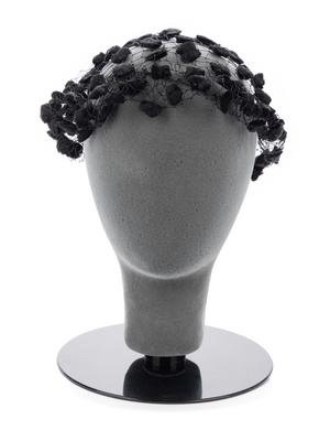 Black net beret with wired pom-poms.