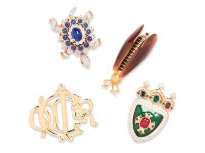 Four Vintage Designer Brooches: Dior, Valentino, Kenneth J Lane, Swarovski