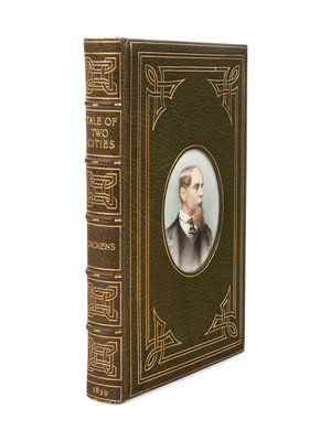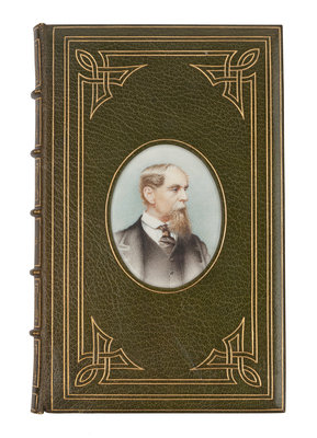 8vo. Frontispiece, etched half-title and 14 plates; with an AUTOGRAPH LETTER SIGNED BY DICKENS tipped in. Green morocco gilt, covers with gilt ruled borders incorporating scrolling corner pieces, front cover SET WITH OVAL PORTRAIT MINIATURE OF DICKENS, spine in 6 compartments with 5 raised bands, gilt lettered in 2, remaining with elaborate gilt decoration, turn-ins gilt with marbled end papers, edges gilt STAMP-SIGNED BY BAYNTUN (RIVIERE), BATH, ENGLAND (spine slightly sunned). Provenance: Sold Christie's Los Angeles, 8 November 2000, lot 176.