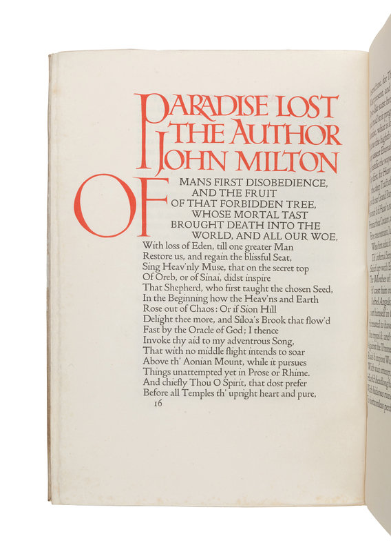 [DOVES PRESS]. MILTON, John (1608-1674). Paradise Lost [and] Paradise Regained. Hammersmith: The Doves Press, 1902, 1905.