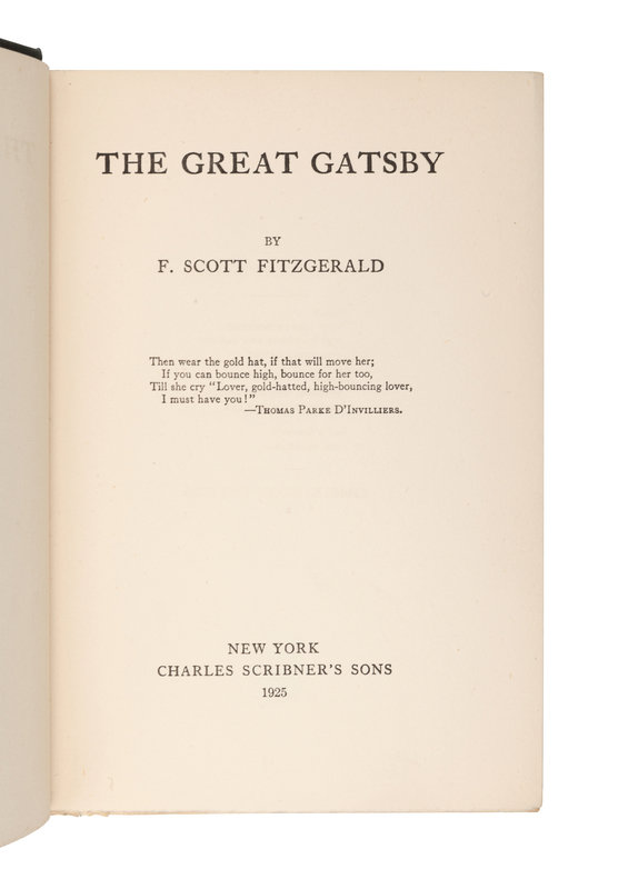 FITZGERALD, F. Scott (1896-1940). The Great Gatsby. New York: Charles Scribner’s Sons, 1925.