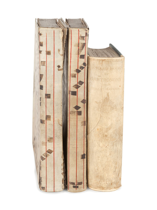 CANISIUS, Petrus. De Maria Virgine Incomparabili Et Dei Genitrice Sacrosancta… London: David Sartorius, 1577. 2 volumes. Near contemporary velllum, manuscript waste antiphonal leaves. BRILLAT-SAVARIN, Jean Anthelme. A Handbook of Gastronomy. London: J. C. Nimmo and Bain, 1884. Contemporary vellum. LIMITED EDITION, number 179 of 300 copies. -- Together, 2 works in 3 volumes, condition generally good.