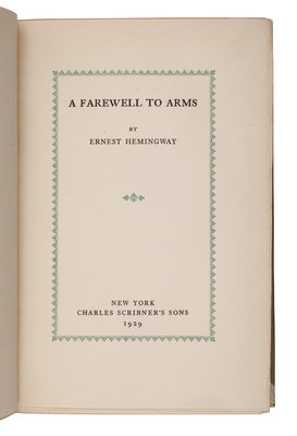 HEMINGWAY, Ernest (1899-1961). A Farewell to Arms. New York: Charles Scribner's Sons, 1929.